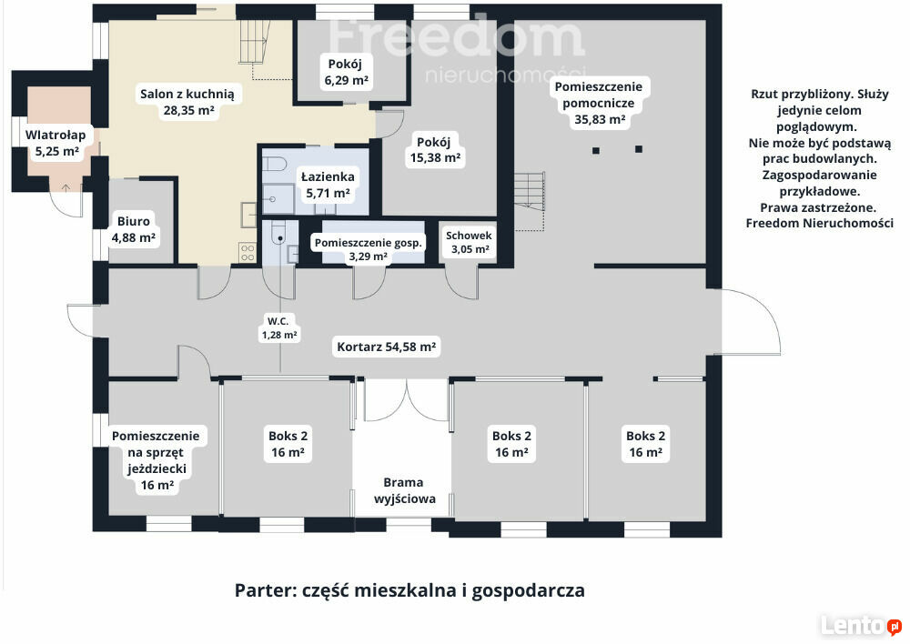 Część gospodarcza: 167,8 m² – boksy dla koni, pomieszczenia